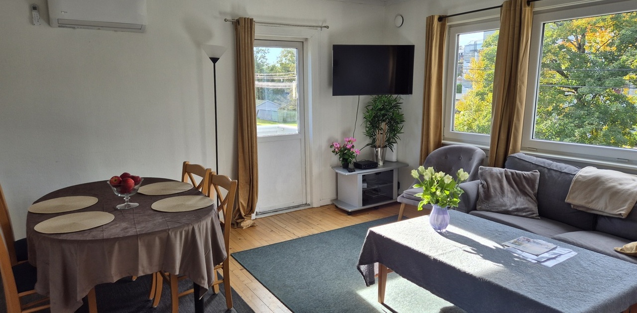 Leiligheten ligger kun 10 minutters gange fra sentrum og 1o minutters gange fra sentrum og 15 minutter fra universitetet