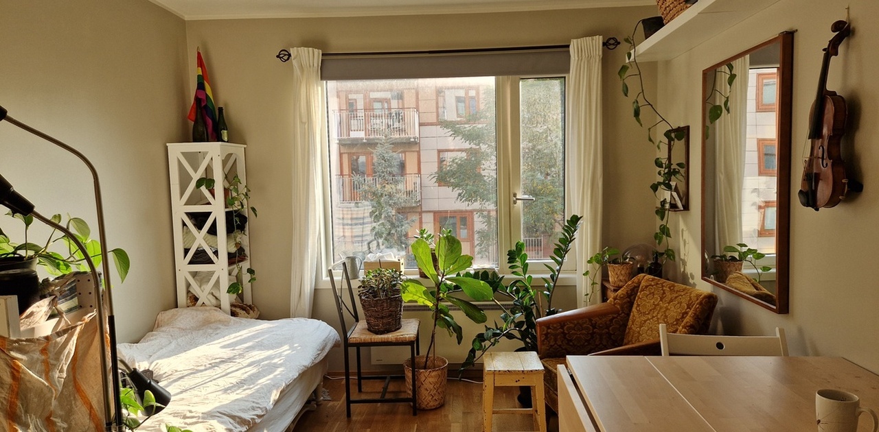 Arealeffektiv; stue/soverom og kjøkkenkrok med komfyr og kombiskap (kjøl/frys). Leiligheten ble malt i 2023, og er delvis møbelert (hvitevarer og skap). Kan leies ut møblert om ønskelig.