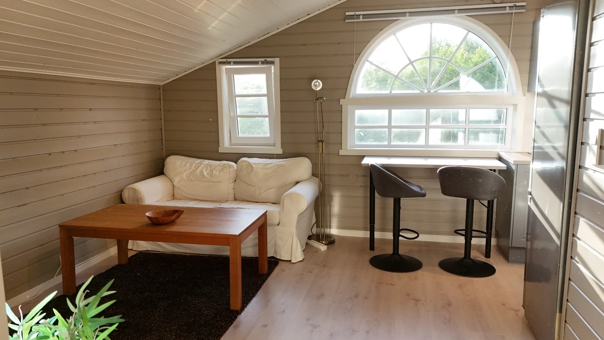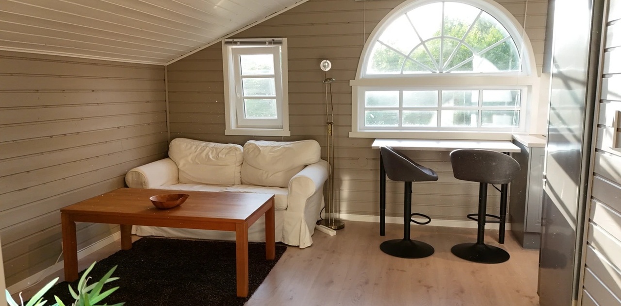Leiligheten på 42 kvadratmeter er nøye designet med en frisk og moderne stil. Beliggende på siden av en flott villa, tilbyr leiligheten en rolig atmosfære med umiddelbar nærhet til alt du trenger. Den er i andre etasje, bygget over en garasje som ikke er i bruk, og har egen utgangsdør og hageplass, noe som gir en følelse av privatliv og ekstra komfort. Det er tillatt med parkering på eiendommen, noe som gir ekstra bekvemmelighet for deg som leietaker.