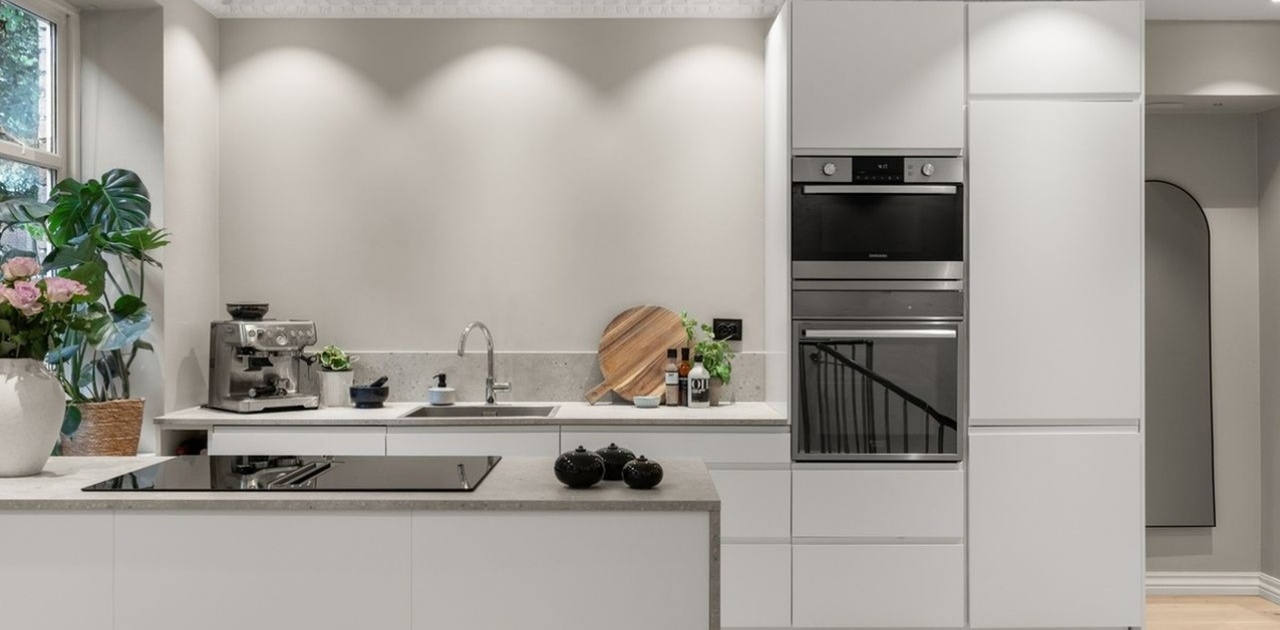 Kjøkken oppgradert 2023 med praktisk kjøkkenøy og integrerte hvitevarer