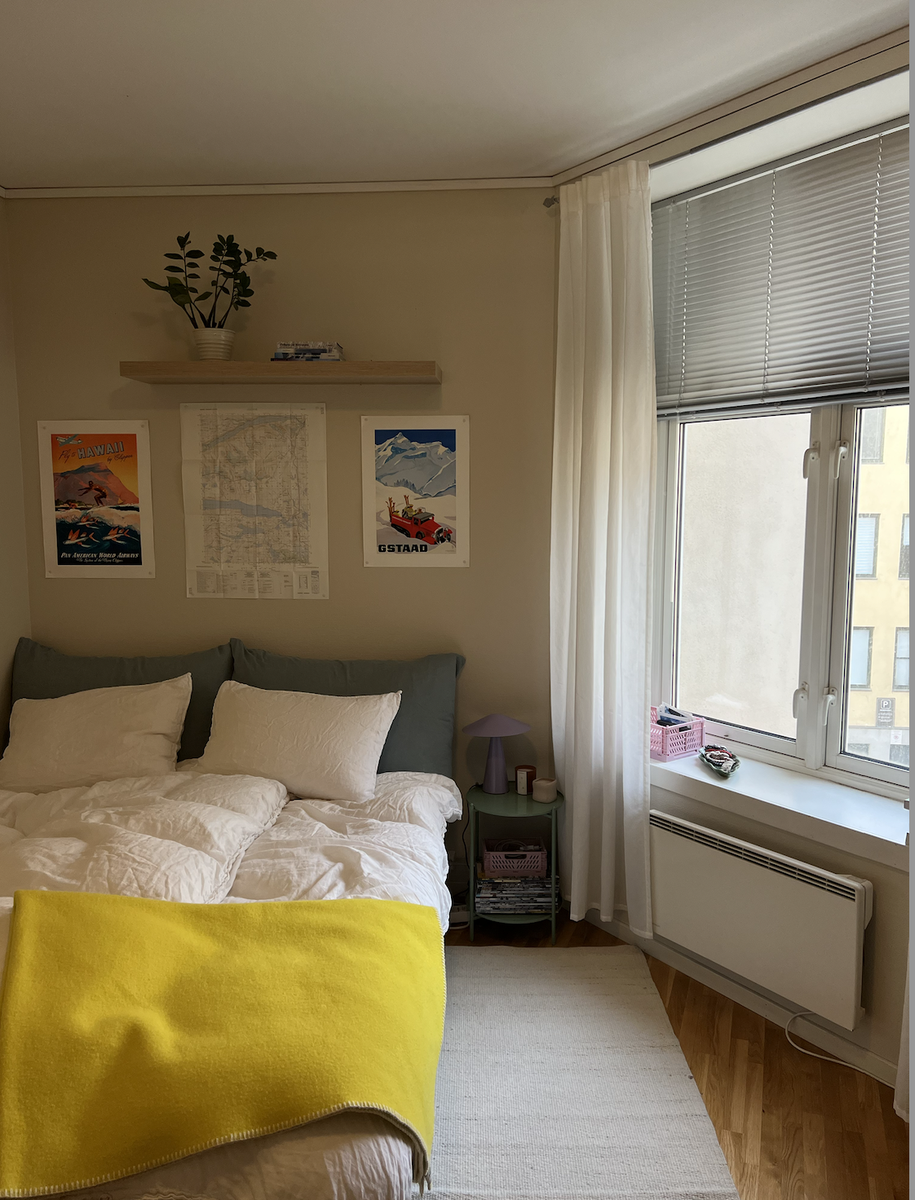 Leiligheten ligger i 3.etasje, er på ca 70kvm, og soverommet som leies ut er svært romslig og på ca 13 kvm. Soverommet kan leies ut møblert (jeg selger gjerne møblene for en billig penge!) med seng (160), pult + stol, skap og klesstativ. Rommet ligger også vendt mot bakgården, som gjør at det er stille og rolig og ingen problemer med støy.