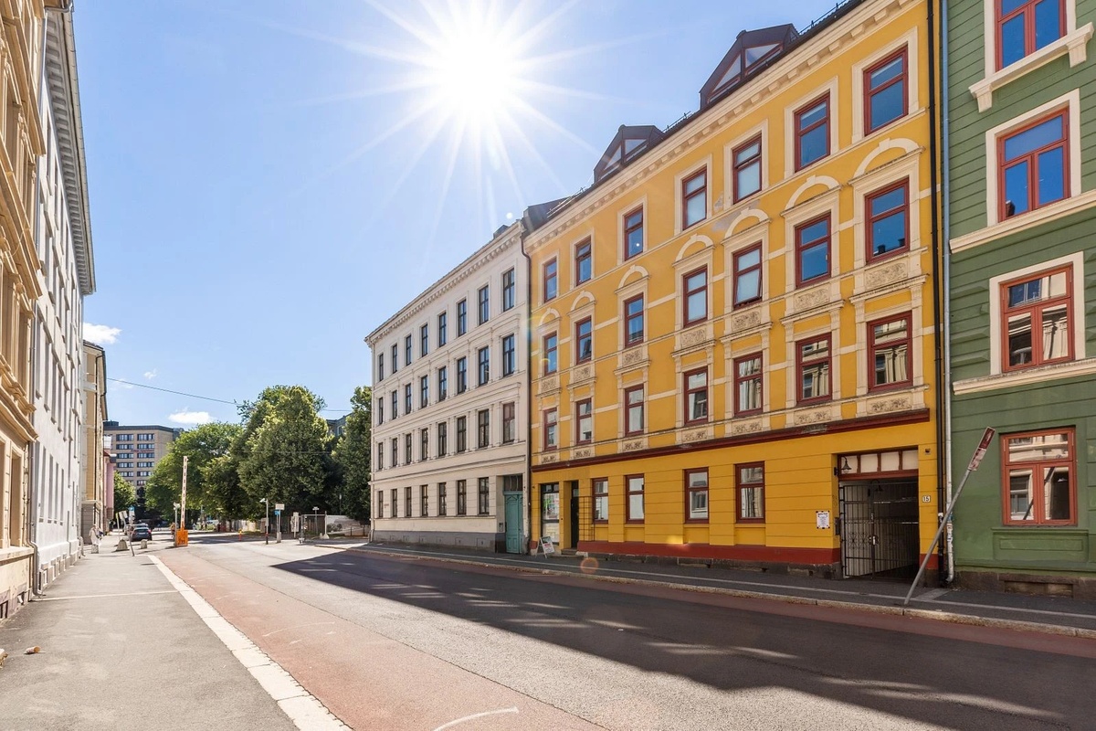 Beliggenhet – Rolig, men sentralt: Leiligheten ligger i Schleppegrells gate, en stille enveiskjørt gate med kort vei til alt.
