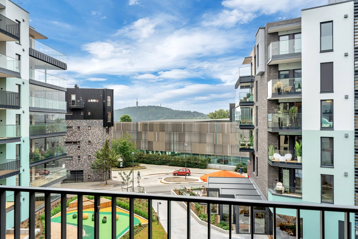 Her lever du sømløst, rolig og behagelig. Med alt innenfor umiddelbar nærhet. Felles uteområder, amfi, vinterhage for selskaper/ samlinger. Dagligvare på bakkeplan, trening, badeanlegg, spa, KRS live, bystranda, sjø og elv innenfor 1 min gange.1 min til metroaksen. 800 meter opp gata så er du i Baneheia med tilhørende løypenett, rekreasjon og skog. Eget bakeri på bakkeplan, bistro ved Trond moi på bakkeplan. Et levende godt sted for alle livsfaser.