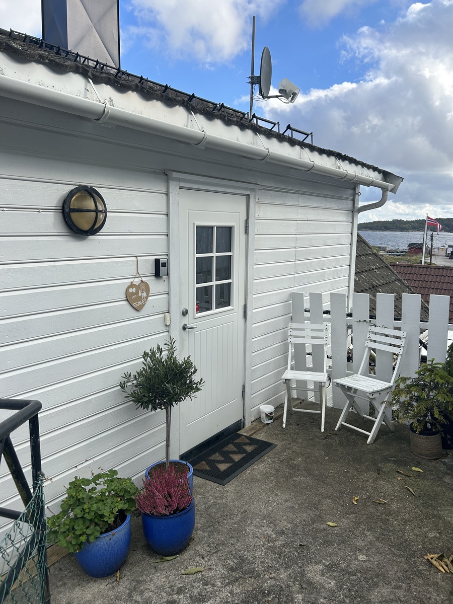 Leilighet i toppetasje rett ved sjøen med flott utsikt, med eget uthus/bod for sykler, dekk og annet. Leiligheten har inngang som er skjermet fra resten av huset, inngangsport til egne parkeringsplasser ( 2) og kort vei ( 2 min) til buss (M1). Her bor du/dere som i en egen bolig skjermet fra resten av huset. Leiligheten er nylig oppusset, lys og trivelig. Det er nytt stort bad med fliser, varmekabler og dusj. Leiligheter har to soverom, åpen kjøkkenløsning til stue med flott utsikt til sjø, stor entre med garderobeskap. Det er vedovn i stue og derfor er det lite strømutgifter (egen strømmåler) . Leiligheten er delvis møblert med kjøleskap, oppvaskmaskin, vaskemaskin, tørketrommel, integrert ovn etc. Leiligheten har egen terrasse, med gode solforhold hele dagen og flott utsikt til sjøen. Det er mulig å ha kajakk på brygga.