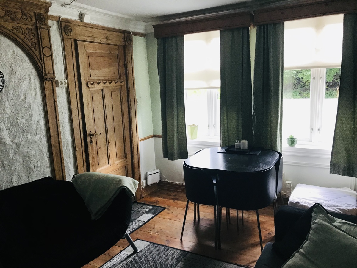 Leilighet i liten trehus midt på Nordnes. Stuen og kjøkken i første etasjen.