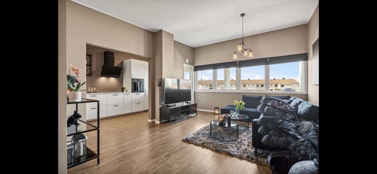 Lys og moderne 3-roms toppleilighet med innglasset balkong og boder – ledig fra midten av juli