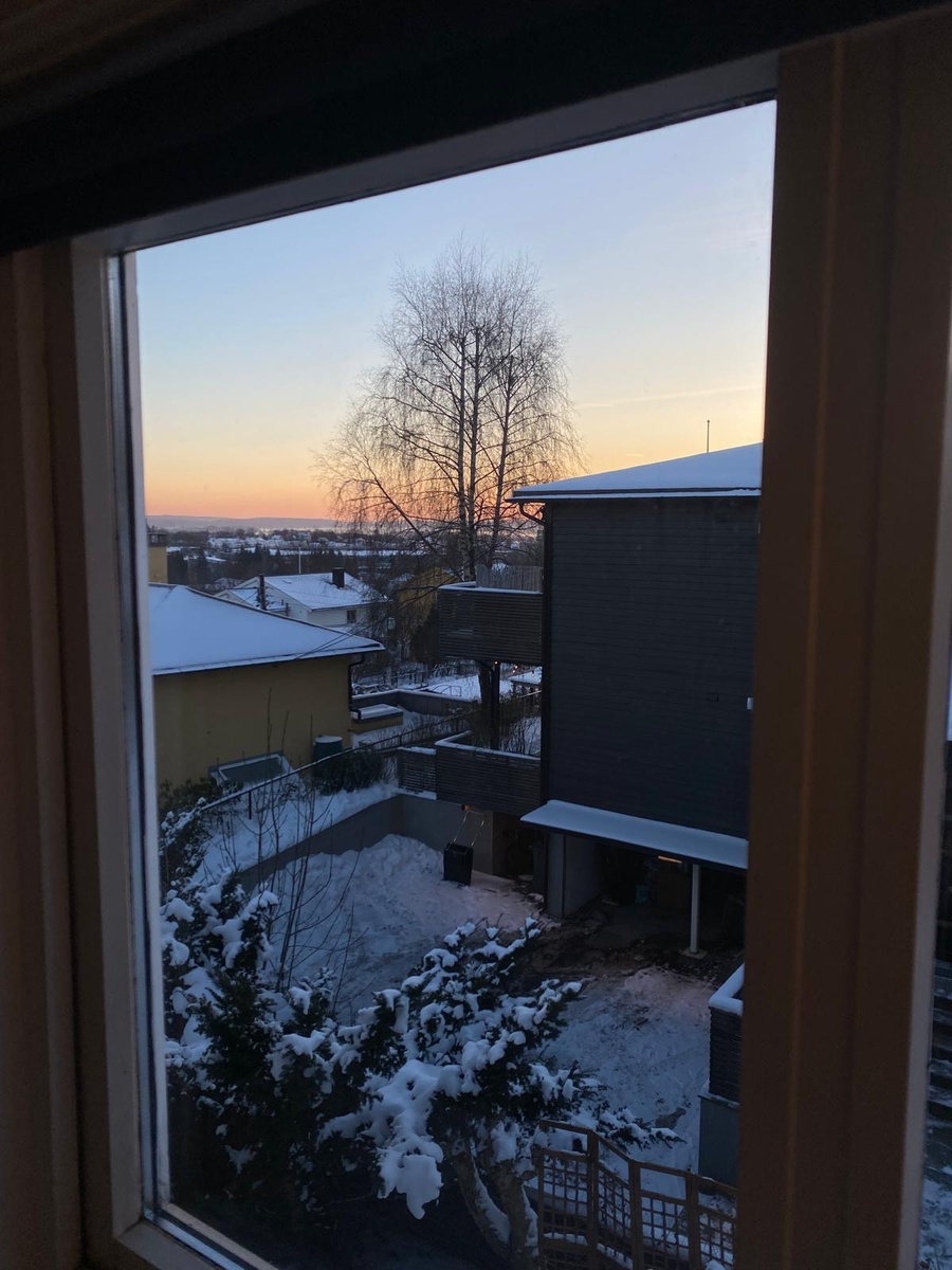 Kort vei til buss og t-baneringen. Sparkesykkel kan tas helt til døren.
