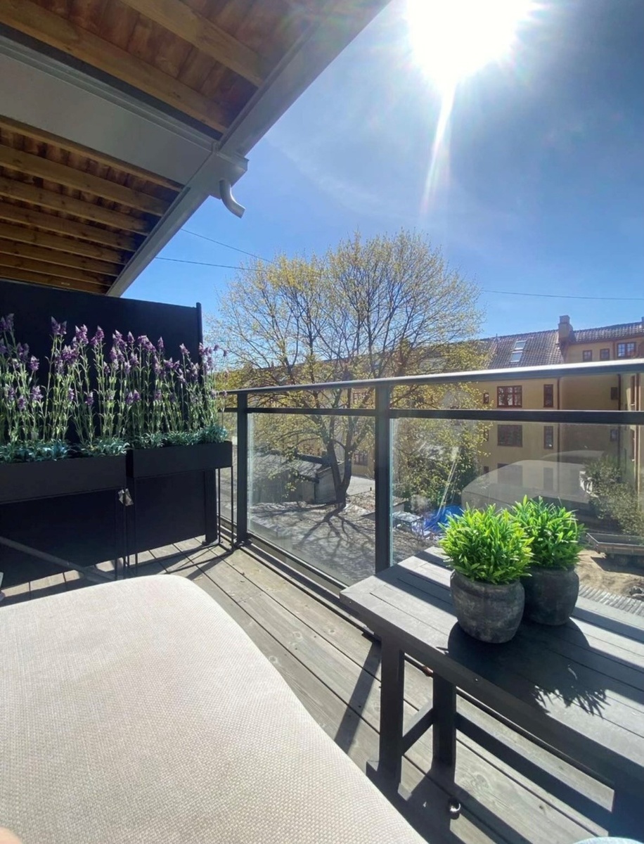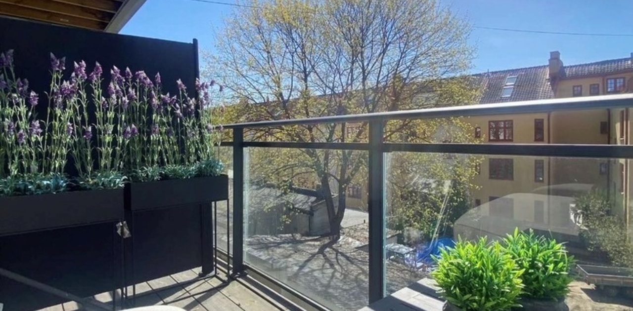 Leiligheten har felles stue, kjøkken og bad samt en balkong med skjermet beliggenhet.