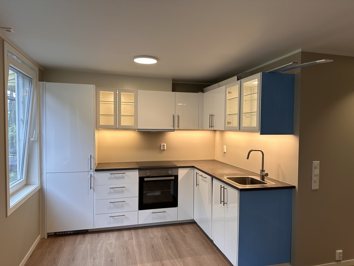 Nyoppusset: Alt av elektriske installasjoner, rørleggerarbeid, og alle overflater er nymalte med nye gulv.