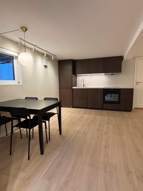 Vi leier ut en ny og moderne hybel (fra 2025) med egen inngang. Leiligheten ligger i første etasje på et rekkehus i Holmenkollveien.