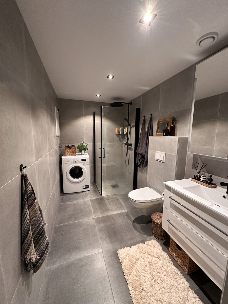 • Flislagt bad med installert vaskemaskin.