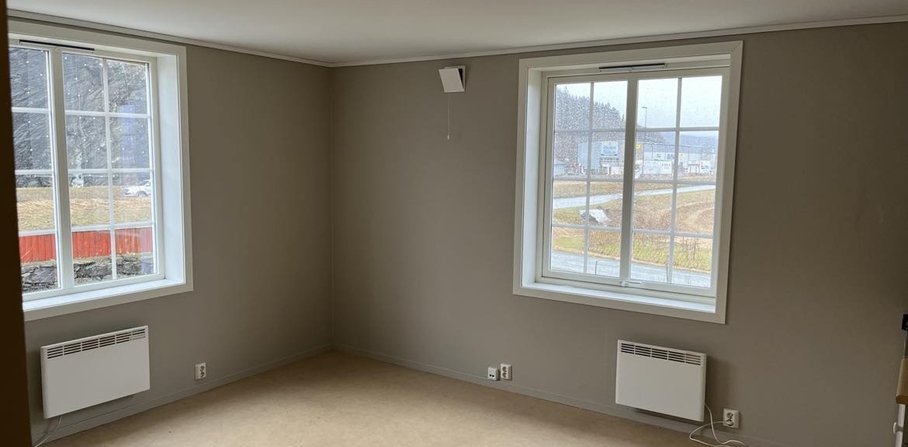 Pen og letter oppusset hybel på Øysand leies ut. Vinduer er byttet og hybelen er malt opp siden sist det bodde noen her.