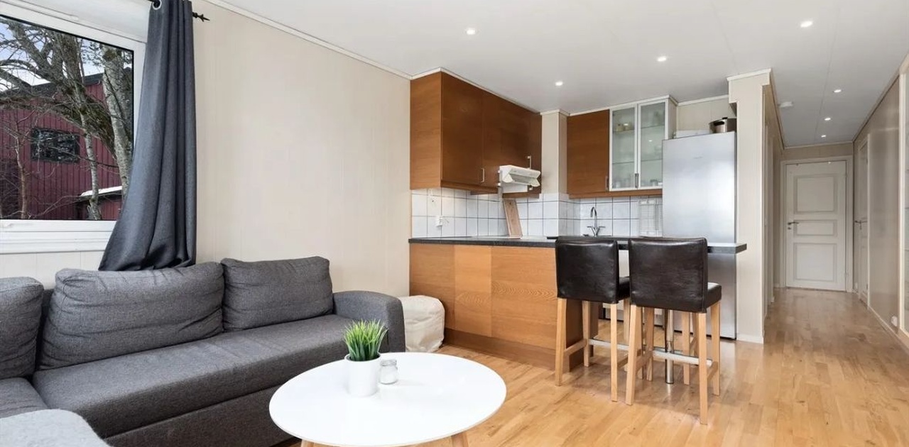 En flott 3-roms leilighet som ligger i et rolig område. Leiligheten inneholder 2 soverom, kjøkken, stue, bad, bod og gang.