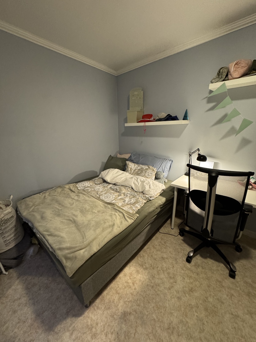 Leter etter en ny roomie til å dele den fine leiligheten min, da min roomie dessverre måtte flytte hjem. Ser helst etter en annen jente i 20-årene, da jeg selv er 21 og studerer siving i kjemi, og bruker mesteparten av tiden på skole:) Både soverommet og leiligheten er romslig og koselig, og god lagringsplass med bod i gangen og i kjeller. Ingen depositum og internett inkludert, og billig leie på 6750+ strøm:) Leiligheten er i utgangspunktet umøblert, men alt unntatt soverommet er møblert. Innflytting er veldig fleksibelt, frem til 1. februar:))