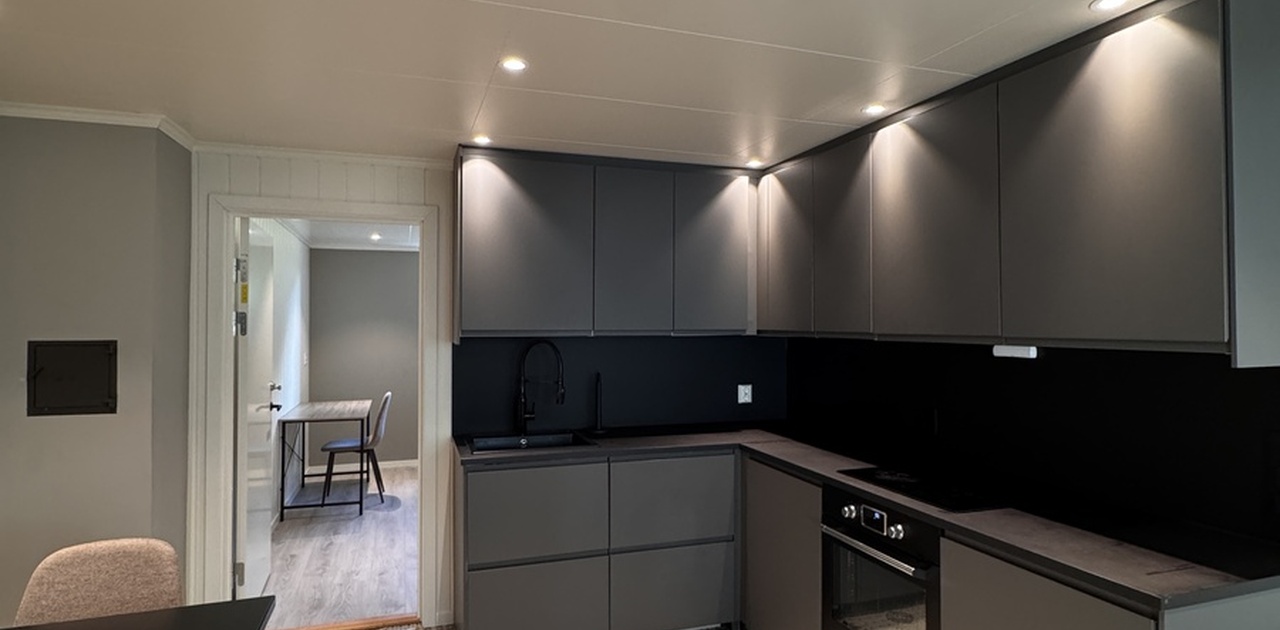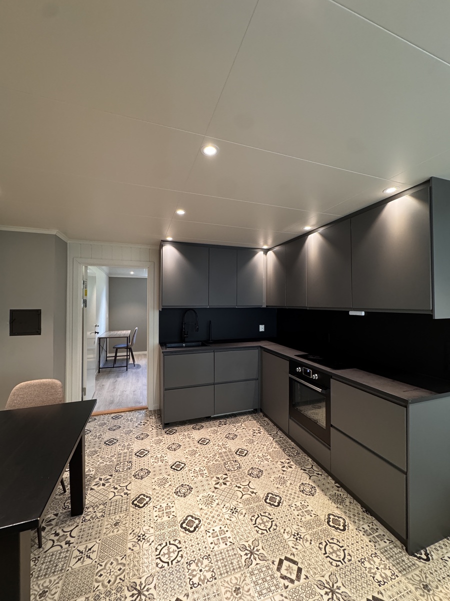 Det vil etter hvert bli separat inngang til leiligheten. Vi bor selv i etasjene over og er tilgjengelige dersom det skulle være spørsmål eller behov underveis.