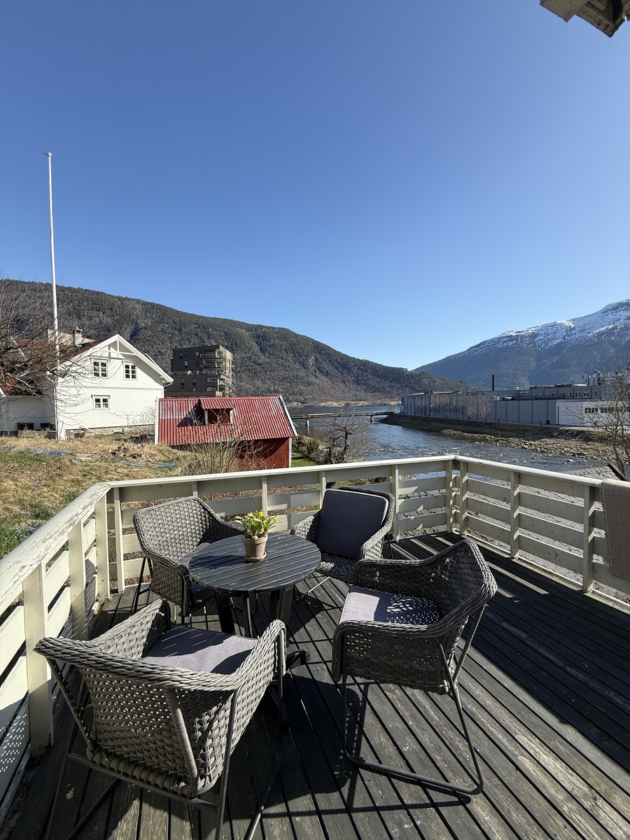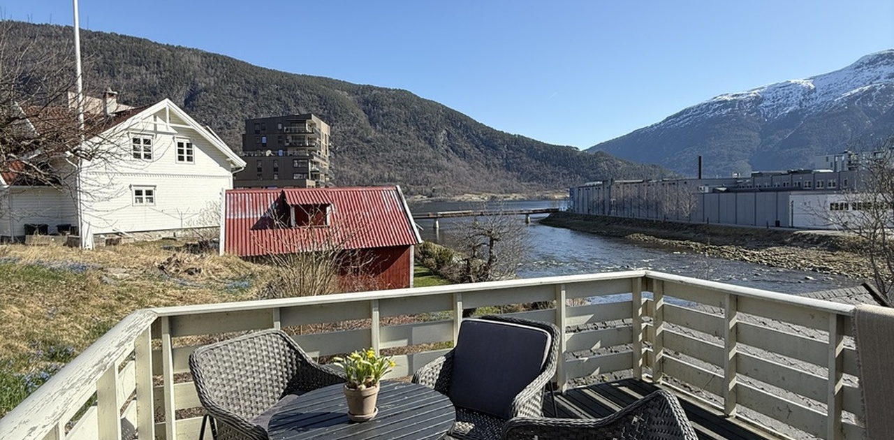 Leiligheten ligg sentralt i Sogndal. Ligg langs fjordstien og Sogndalselva.
