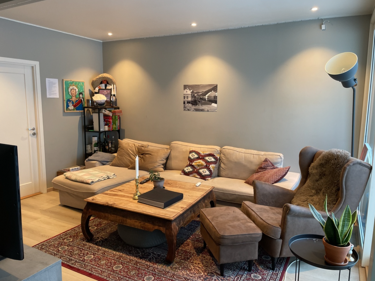 Med et åpent kjøkken mot stua, er det enkelt og naturlig å være sosial eller chille sammen. Vi i kollektivet trives godt sammen og samles ofte uplanlagt i stua for å spise middag og drikke øl, se film/serier og høre på musikk fra vårt sonos(!!!)-anlegg. Fest og vors skjer også i ny og ne. Som studenter med tidvis hektiske timeplaner er vi også åpne til å kunne trekke seg tilbake på rommet om en skulle trenge det. Vi synes det er viktig å holde kollektivet ryddig, og rullerer på vaskinga hver uke.