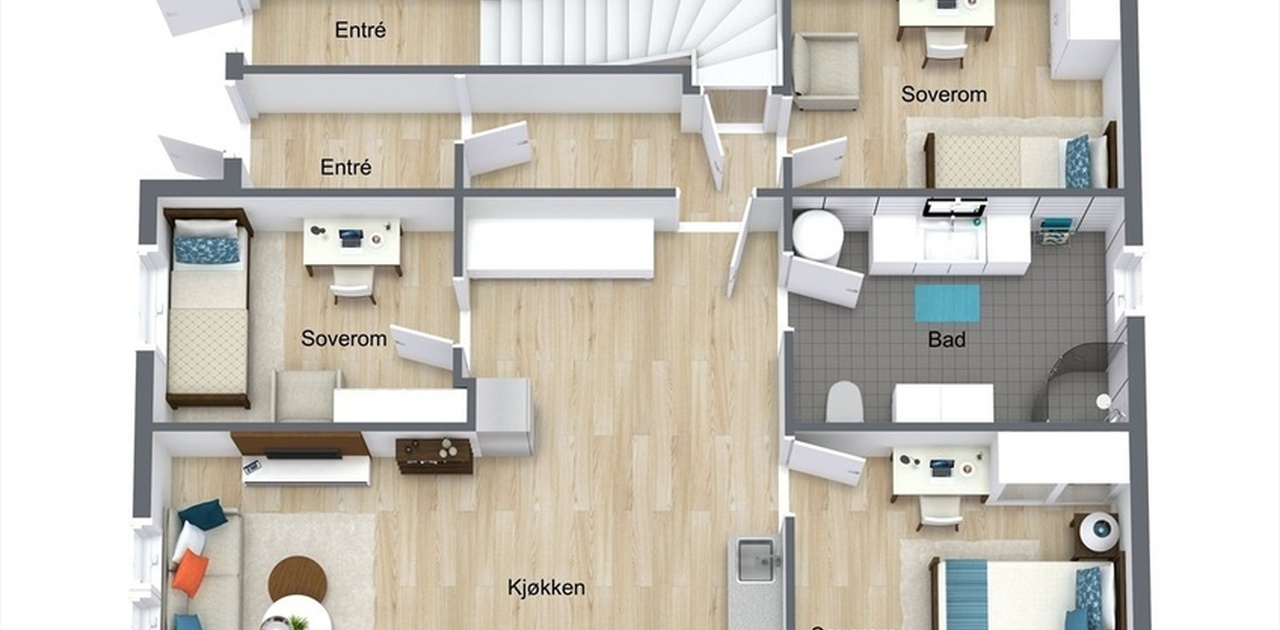 Bilder tatt i 2025, flere av møbler/hvitevarer er oppgradert.