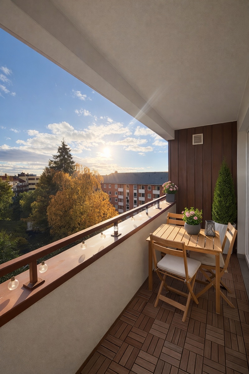 - Sørvendt balkong med gode solforhold og sittegruppe