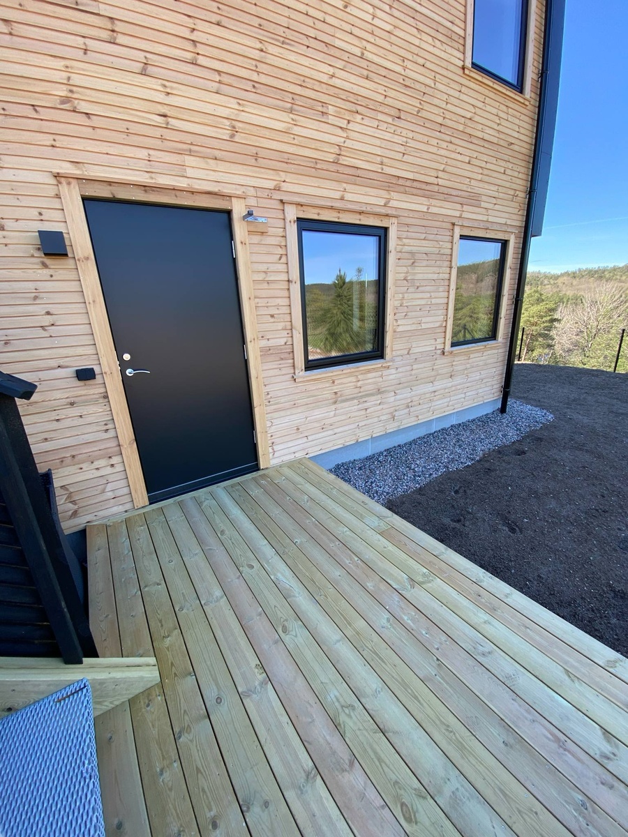 Lys og moderne leilighet med privat, inngjerdet hage og flott utsikt over Repstadvannet