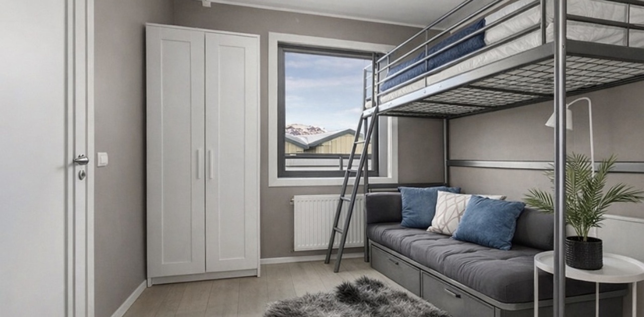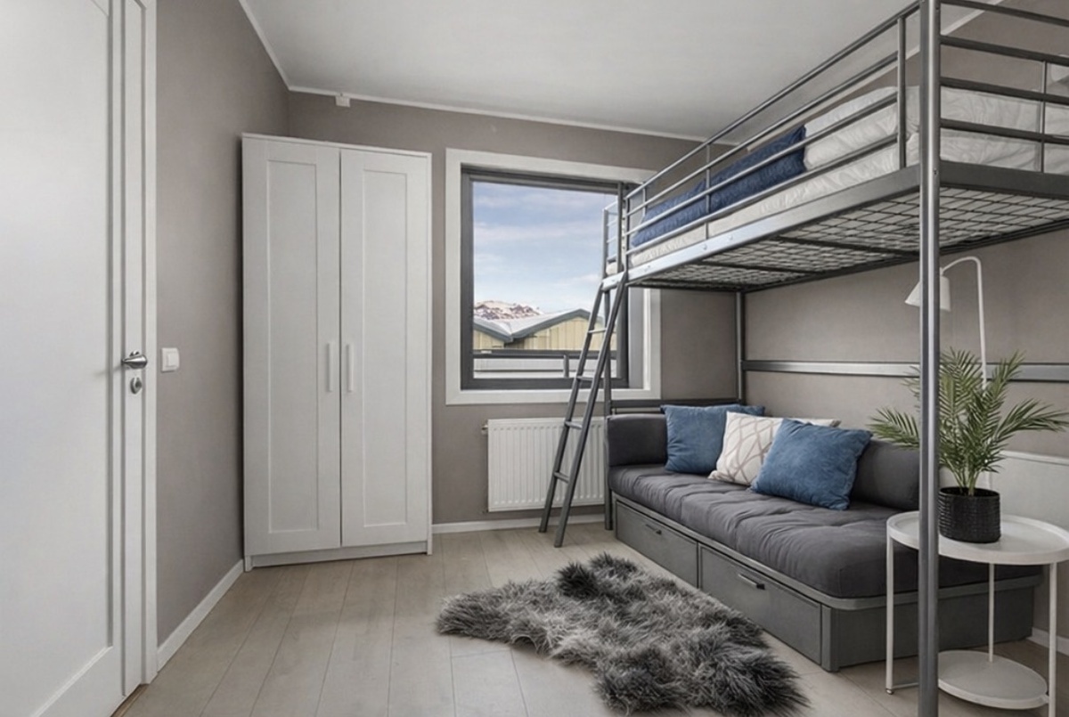 * Praktisk køyeseng med mulighet for sofa eller arbeidsplass under