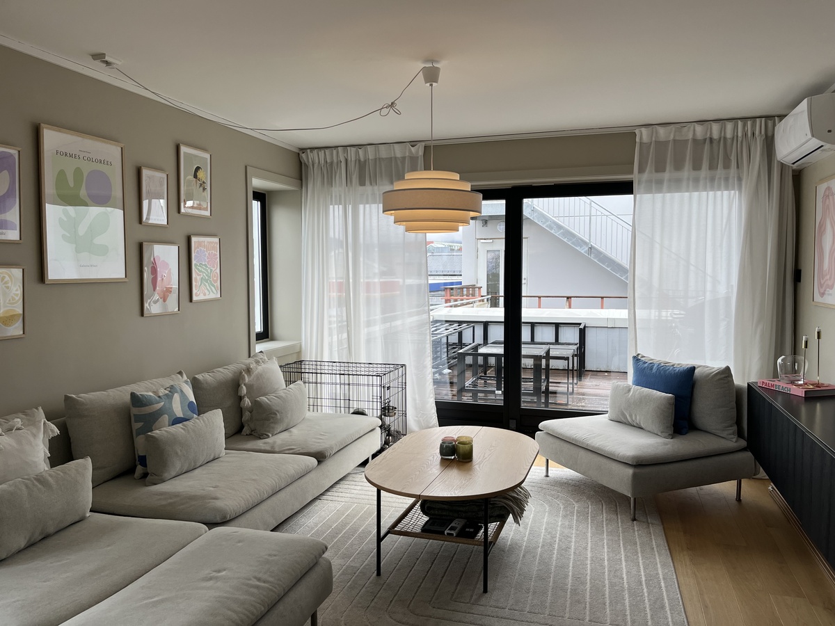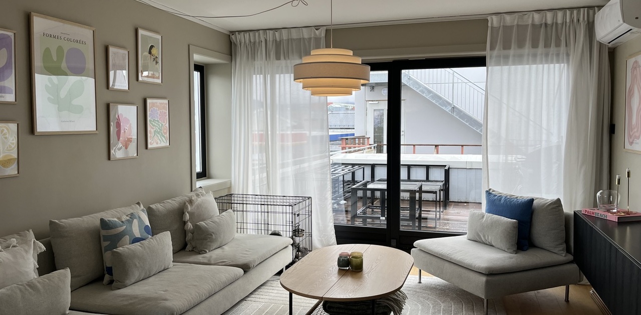 Leiligheten ble totalrenovert i 2022/2023, og det ble blant annet montert varmepumpe.