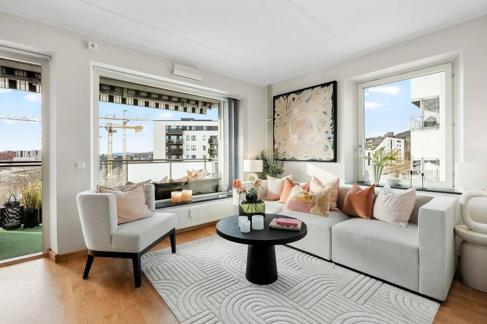 Det er ca. 10 minutter å gå til Økern T hvor du finner linje 4 og 5 som tar deg øst og vest i Oslo. Her finner du også bussforbindelser. Det er også mulighet for garasjeparkering under leiligheten.