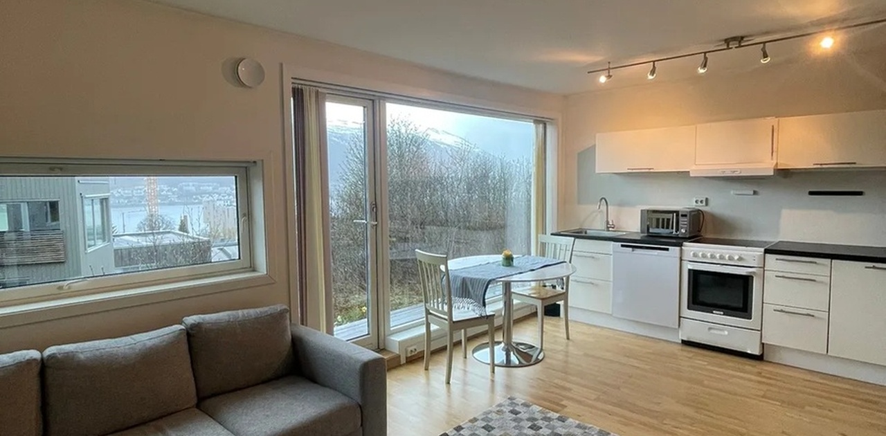 Sentralt beliggende toromsleilighet på 40 kvm i moderne funkisbolig i Tromsø, fullt møblert.