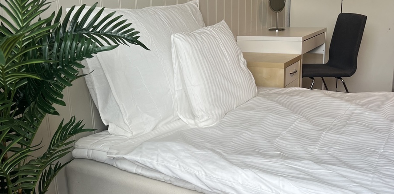 Ukentlig renhold av bad og kjøkken og felles areal er inkludert i leien, med hånd/toalettpapir og såpe.