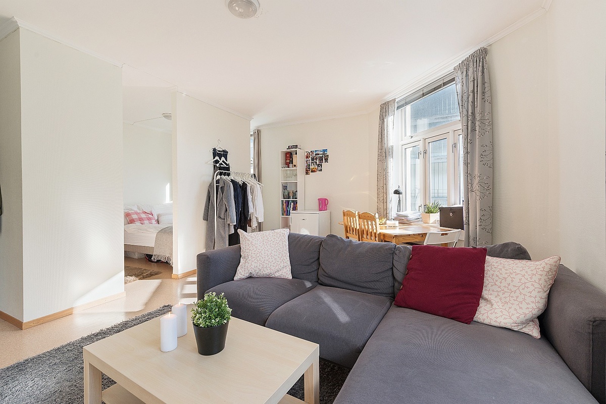 Hybel 35: kr. 6.200,- pr. mnd. inkl. internett. (inkludert Sofa og bord, ikke møblene vist i bildet)