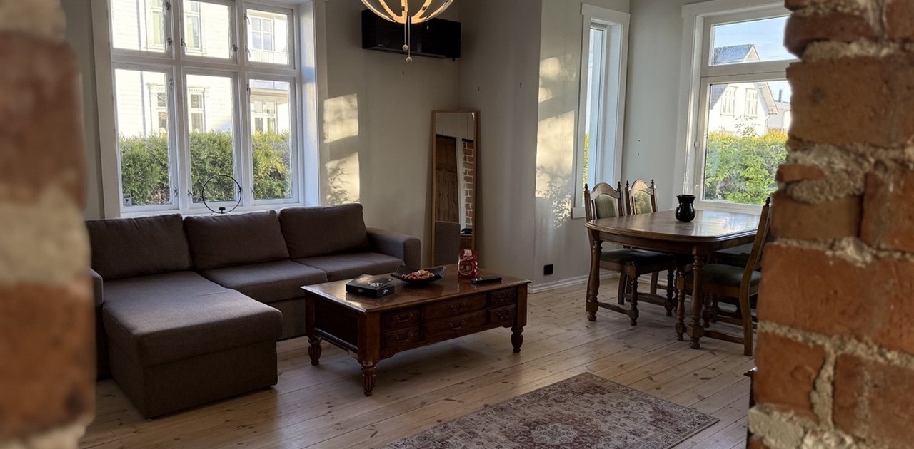 Welcome to Stokkaveien 41 – a spacious, newly renovated apartment in a semi-detached house. The apartment offers two bedrooms, a full of light kitchen and living room, and a private terrace with access to a large garden. Located in a peaceful, family-friendly area just minutes by walk from shops, public transport, and Stavanger city center. 🏙🛒