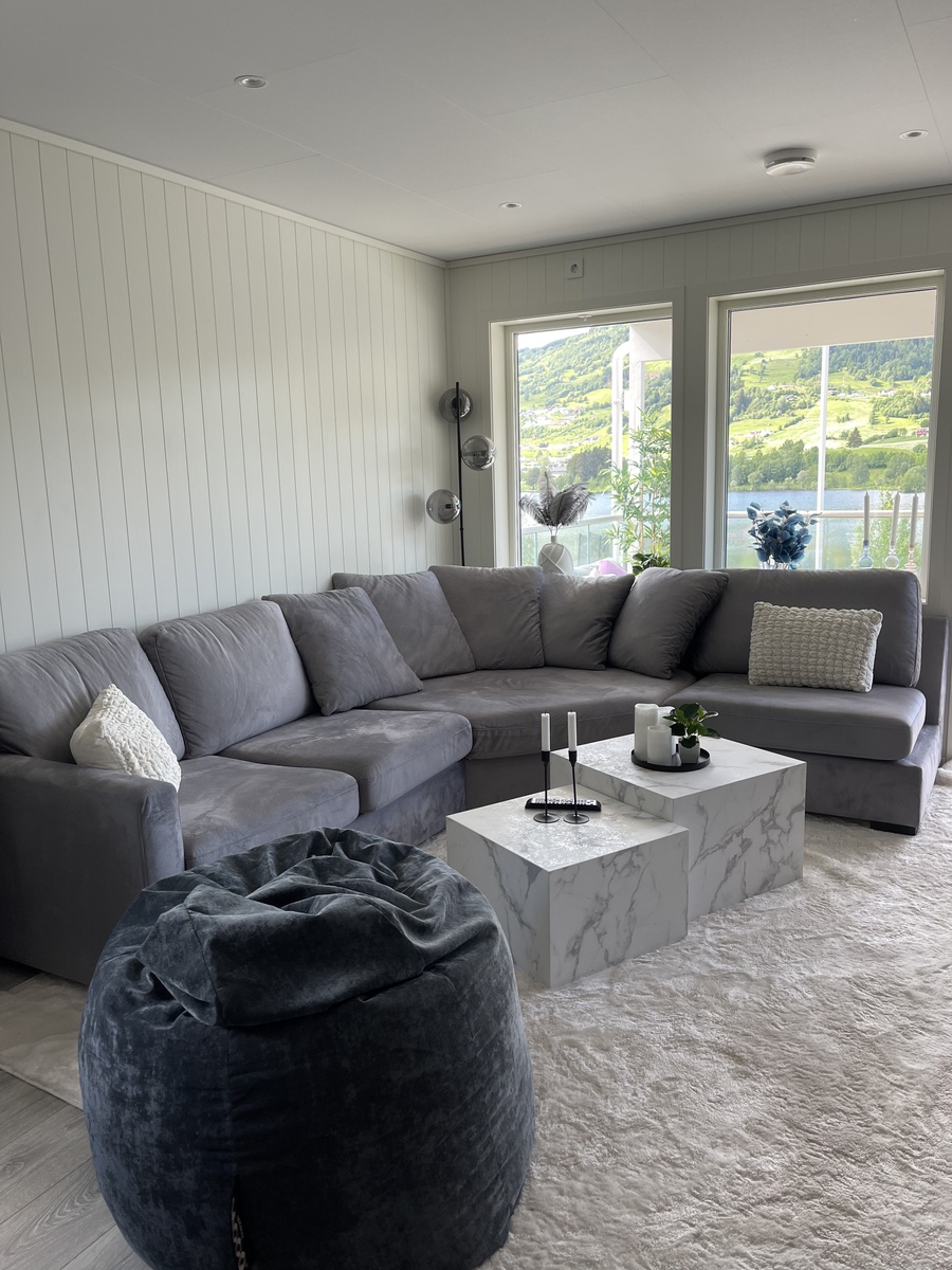 Sentral og moderne leiligheit til langtidsleige på Hafslo i nytt bustadfelt. Leiligheita har to soverom, åpen kjøkken/stove-løysning, bad, tekniskrom/bod, carport (kan stå 2 bilar), balkong og god lagringsplass i utebod. Leigast ut møblert, med stor sofa, spisebord og tilhøyrande stolar, integrerte kvitevarer på kjøkken, seng på begge romma, skoskap i entré mm. Passar perfekt for eit par eller ein liten familie. Barnevenleg område. Felles uteområde med plen. Lite utgifter på strøm då leiligheita ligg i 2.etasje og har vassboren varme.