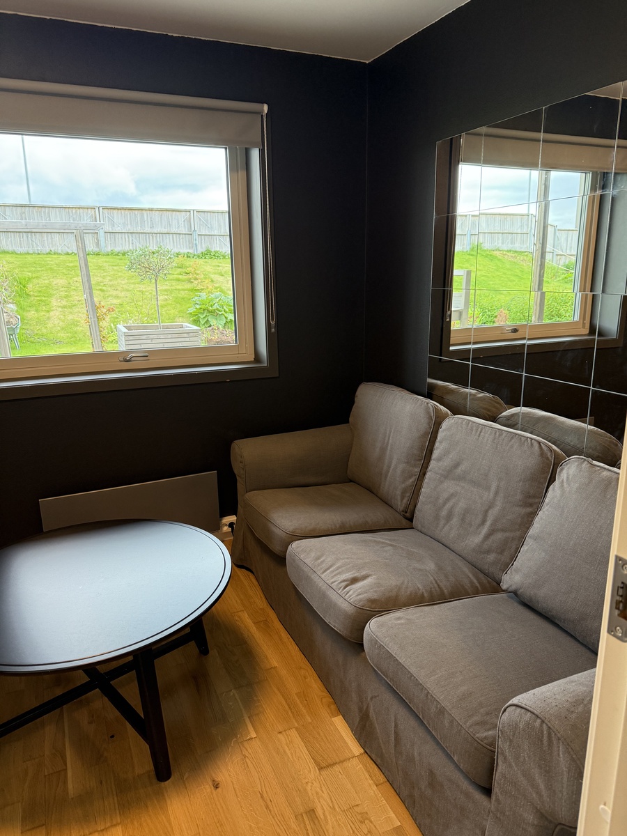 Leiligheten er godt lydisolert i både vegger og tak mot hoveddelen av huset.