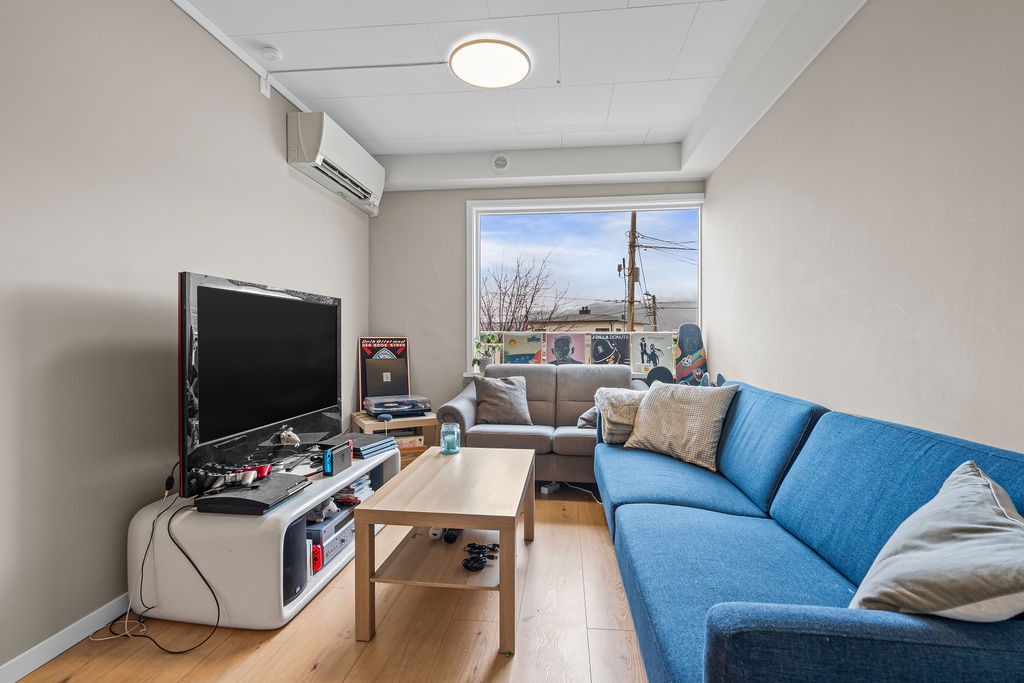 Sentral, luftig og lys leilighet med flott utsikt og fantastiske uteområder. Boligen ble delvis oppusset sommeren 2025 med moderne farger, flere nye gulv og vegger, samt oppgradert elektrisk anlegg. I tillegg har huset fått en stor og nyoppusset felles terrasse (2026), og denne leiligheten har også en privat terasse (som vises på plantegningen).