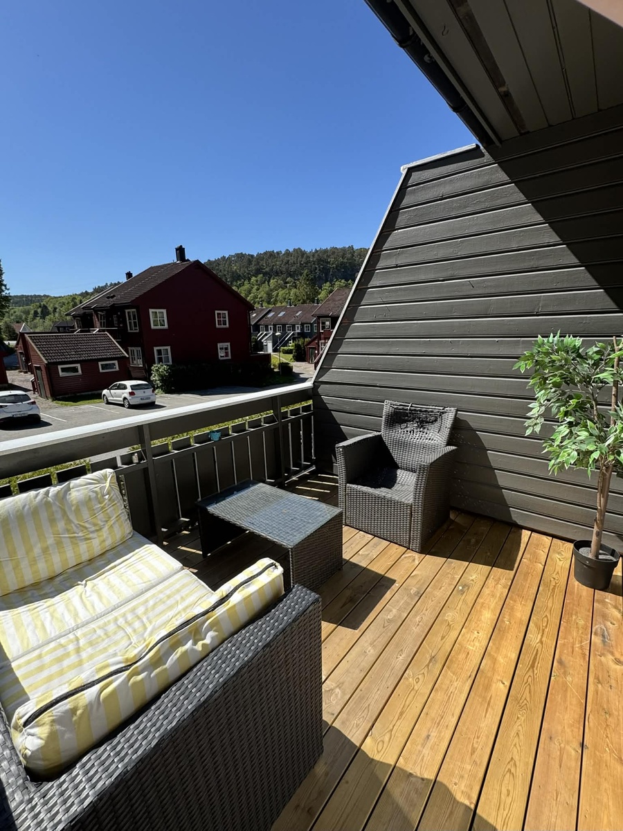Denne leiligheten er over to plan. Leilighetens 1. etasje inneholder gang, bad, kjøkken, stue og to gode soverom. Loftetasje består av liten stue og to romslige soverom. Leiligheten er fullt møblert. Bestikk, stekepanner, tallerkner osv medfølger. Muligheter for oppbevaring i bod og 1 og 1/2 parkeringsplasser. Gode turmuligheter i nærområdet.