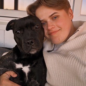 Jeg bor selv i det andre rommet sammen med min hund Cera, en ett år gammel Staffordshire som er rolig inne i leiligheten. Det vil selvfølgelig ikke være noen forpliktelser knyttet til henne, men det er en fordel om leietaker trives med hund.