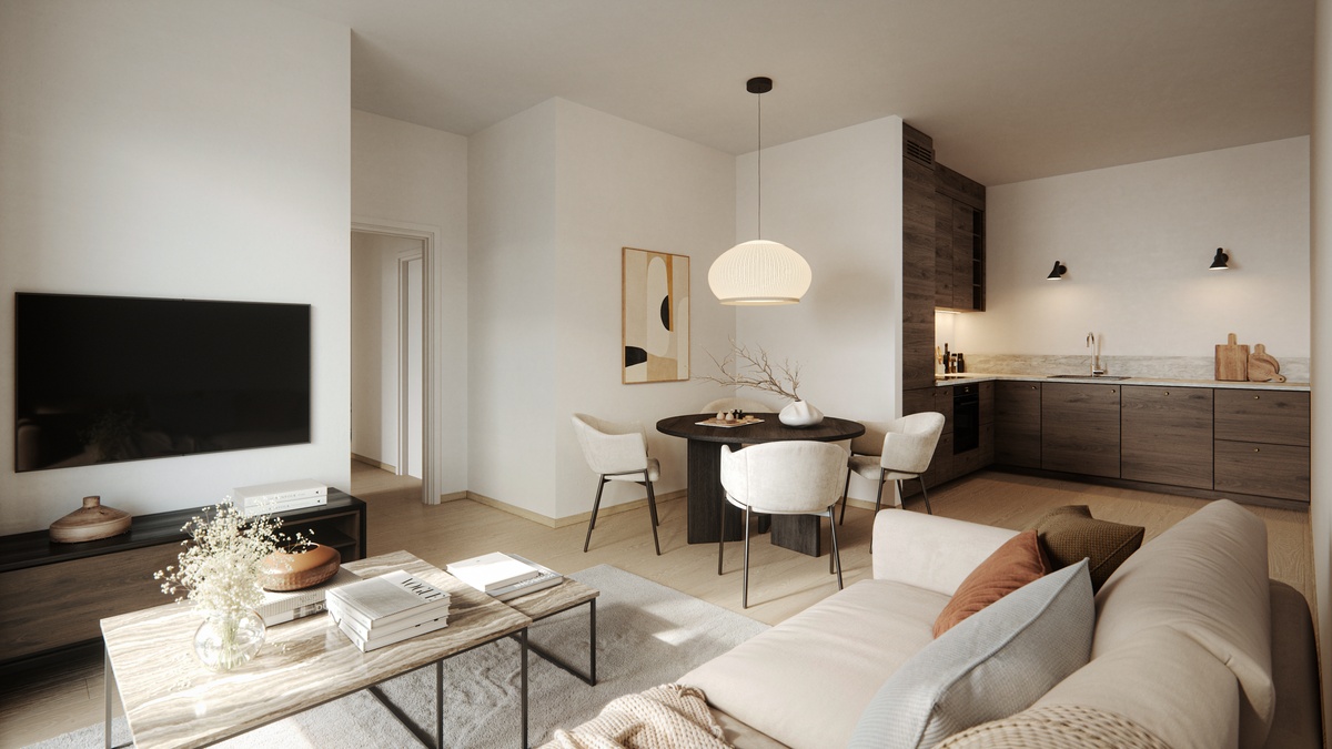 Leiligheten er fullt møblert med helt nye, delikate møbler.