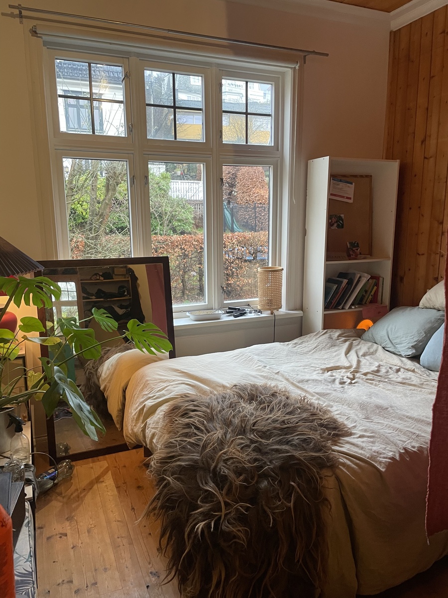 Renting out my big room in a nice apartment in a cozy artist creative kollektiv house. 3 other nice people living in this collective. Small garden, central, nice area. Flexible moving out dates. 27th January - beginning of may (may be possible to extend). Will move my clothes and personal belongings in the period, but furnished:)