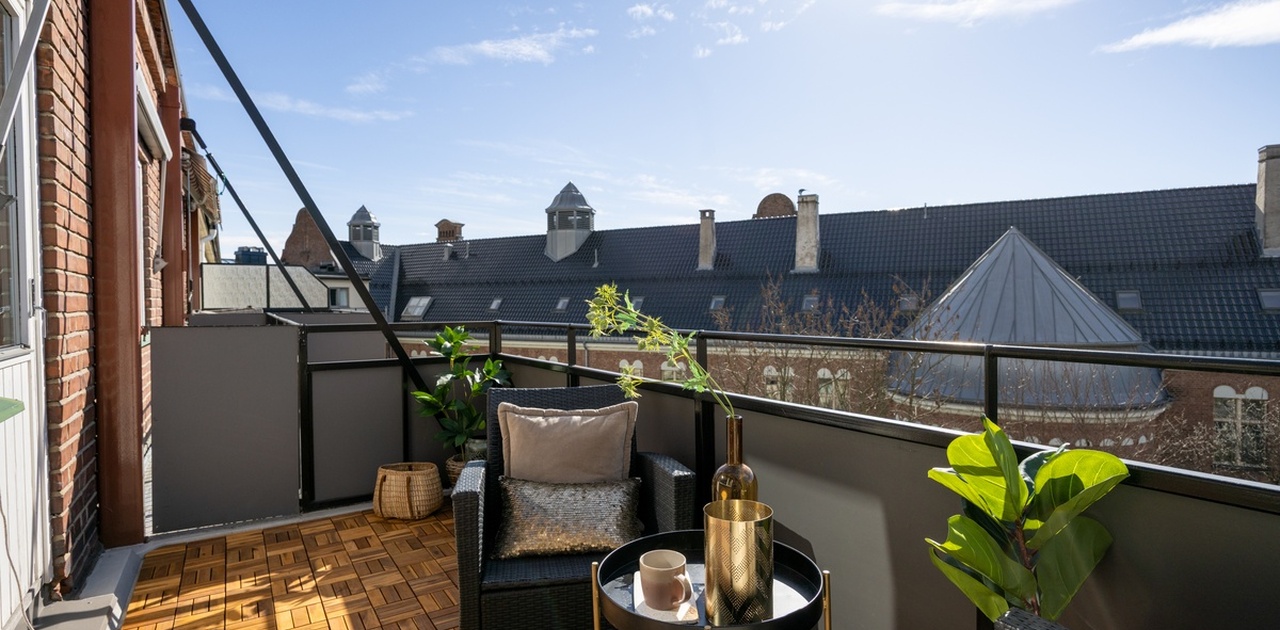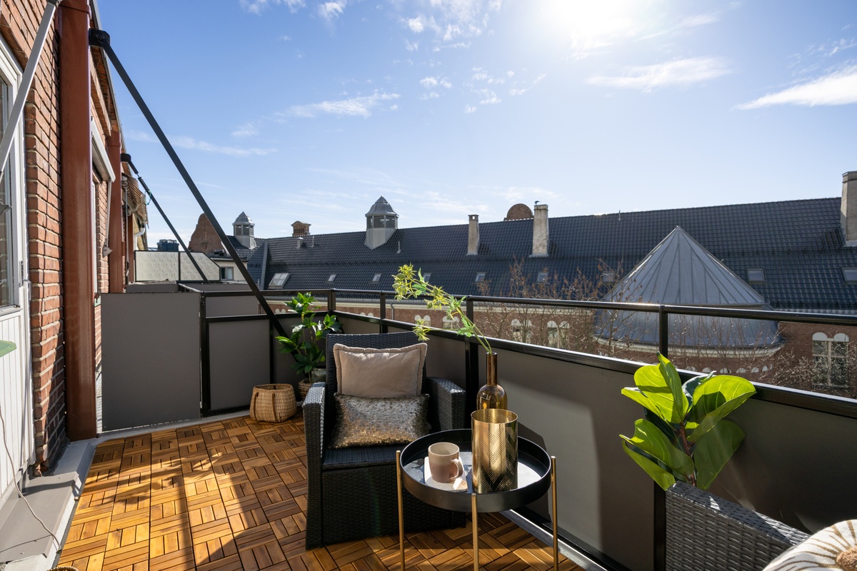 • Lys og skjermet toppleilighet uten innsyn