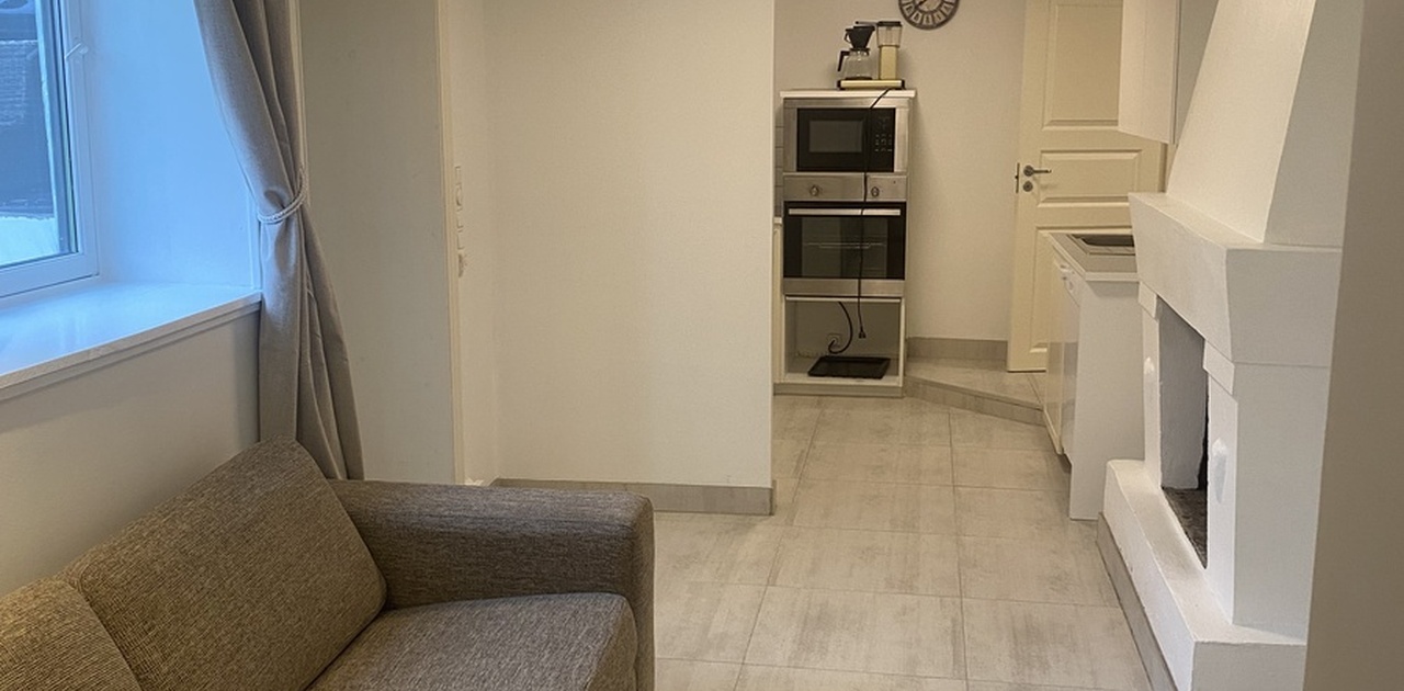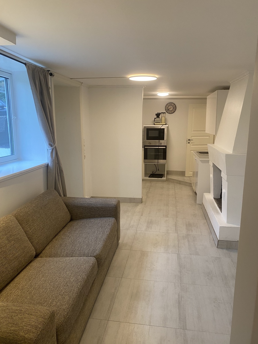 Hybelen leies ut delvis møblert med vaskemaskin, tørketrommel, sofa, skap x2, og hvitevarer til kjøkken.