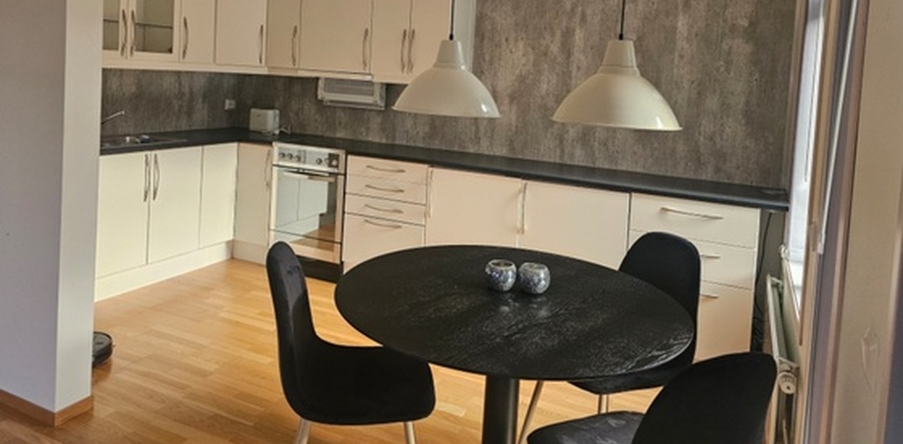 Leiligheten ligger fint til , har fri beliggenhet i førsteetasje og inneholder entrè, vaskerom, 2 soverom, bad og integrerte hvitevarer. Inkludert i leien Internet , tv og fjernvarme til radiatorene og varmtvann.