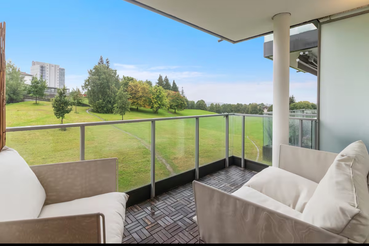 Lys og moderne 2-roms leilighet ideell for én eller to personer, med egen balkong som vender mot grøntområde. Her får du en komfortabel base med fullt utstyrt kjøkken, WiFi og gulvvarme på badet. Vaskemaskin og tørketrommel er tilgjengelig i leiligheten, og det følger med gratis parkering i garasje.