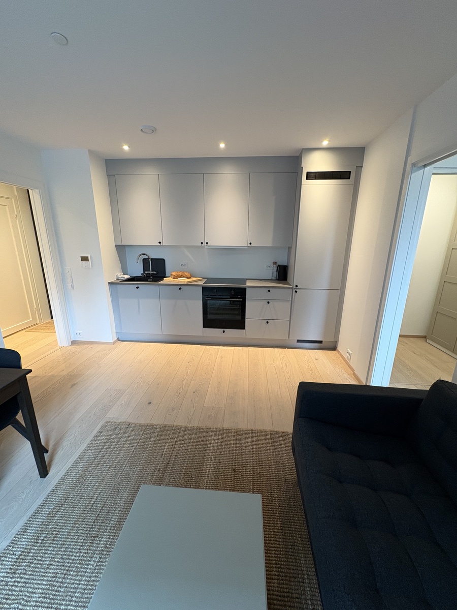 Leiligheten er nylig ferdigstilt august 25, og møblert. Godt utnyttet planløsning med godt med skap plass, og hylle på soverom for oppbevaring.