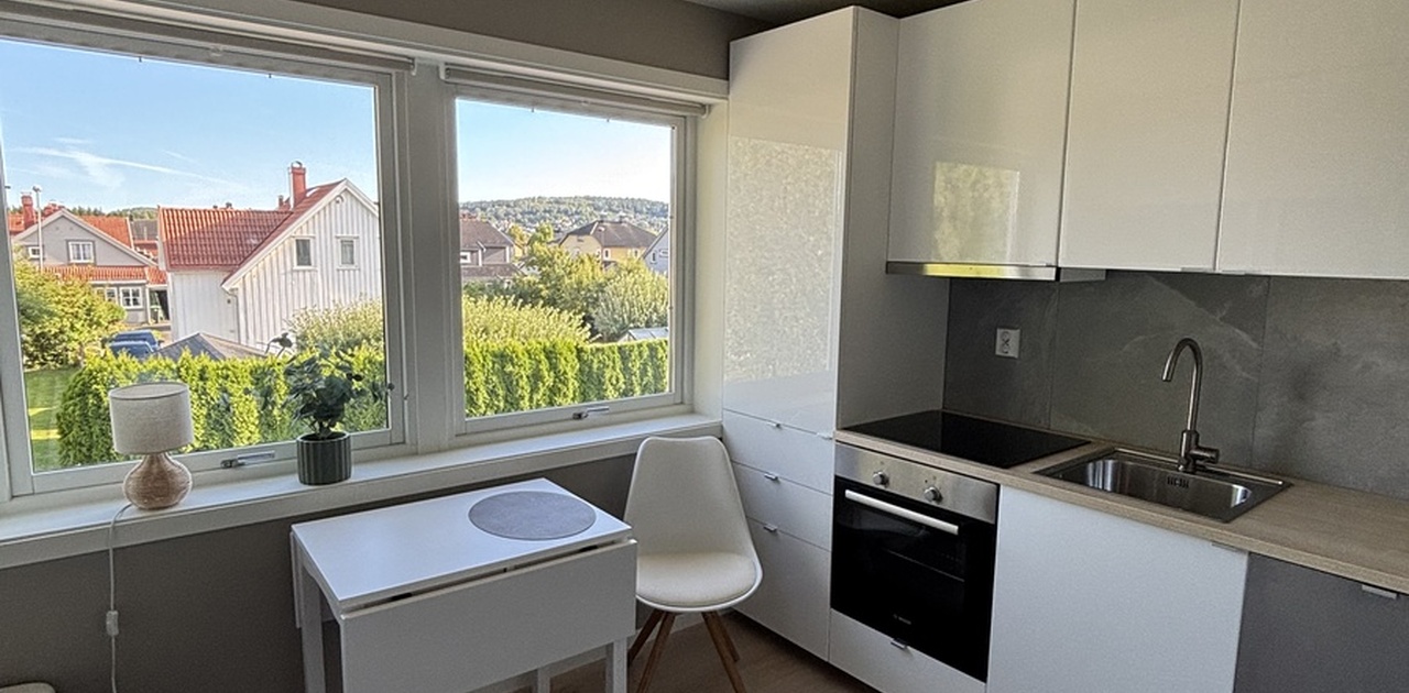 • Eget kjøkken med stekeovn, induksjonstopp, kjøleskap og vask