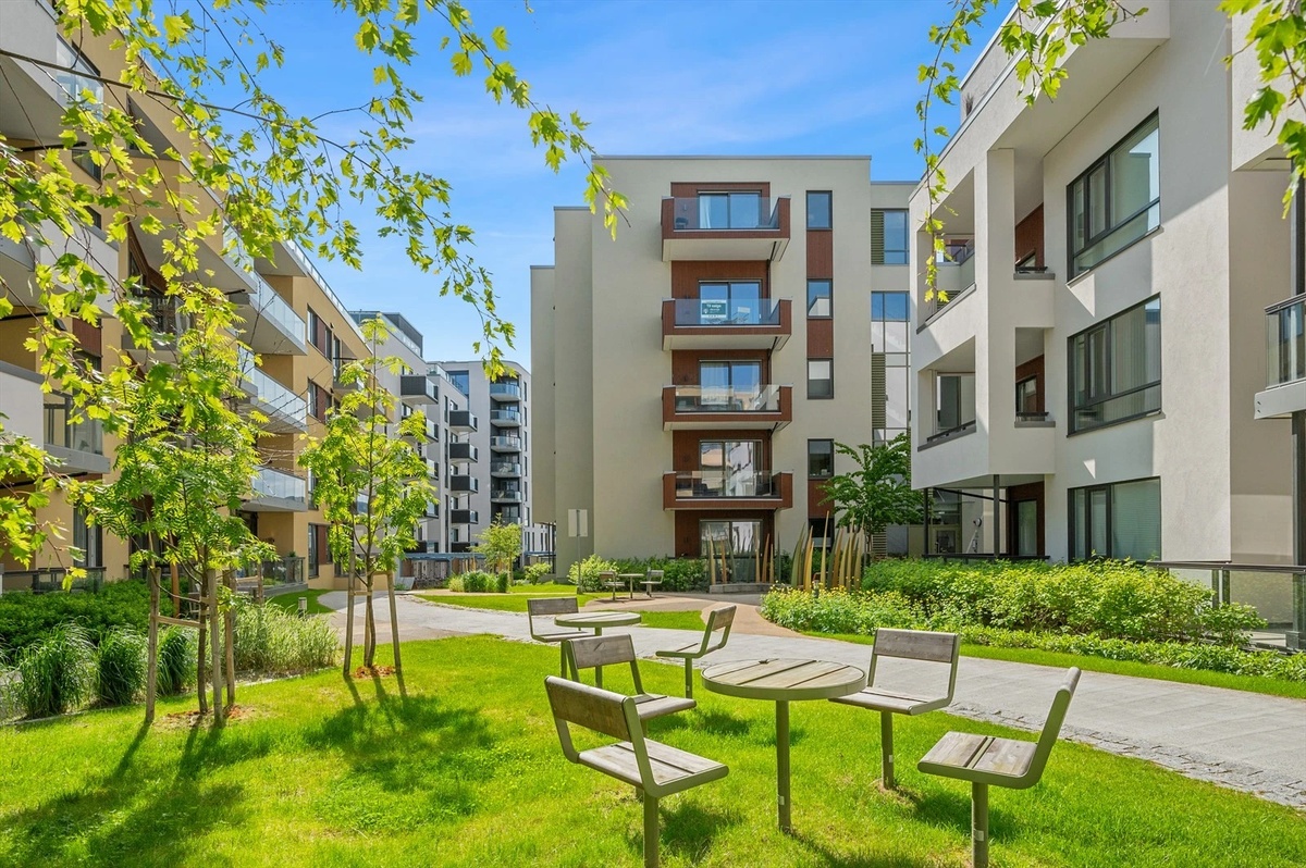 Her bor du komfortabelt med vannbåren gulvvarme, balansert ventilasjon og heis i bygget. Kjøkkenet er praktisk og badet er pent med både vaskemaskin og tørketrommel som følger med. Leiligheten er delvis møblert (Spisebord med stoler, kommoder, skrivebord, sovesofa), men den kan naturligvis leies ut umøblert om det er ønskelig!