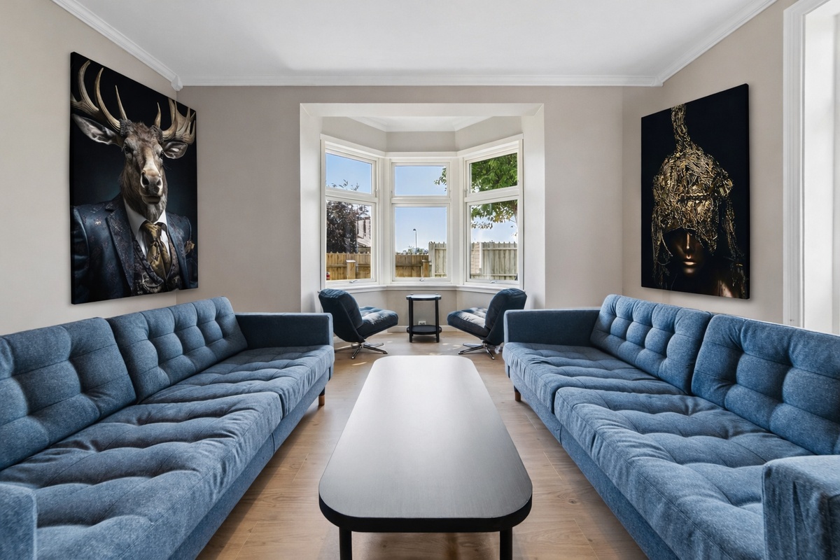 Dette er et fullt møblert, godt vedlikeholdt og godt organisert bo-kollektiv. Villaen har 5 soverom. Alle soverommene er godkjente soverom, med store og gode rømningsveier, toppmoderne el-anlegg, nytt brannslukningsapparat og nye røykvarslere. Huset har smartlås, hvor man bruker kode for å komme inn. Huset har 3 stk. bad med WC og dusjmulighet. Det finnes også vaskemaskin som kan benyttes av hele leiligheten. Boligen går over ett plan og det finnes en stor og fin stue, spisestue og fint og romslig kjøkken med alt av hvitevarer. Det finnes to balkonger med hagemøbler og sol fra kl. 11. til solnedgang.