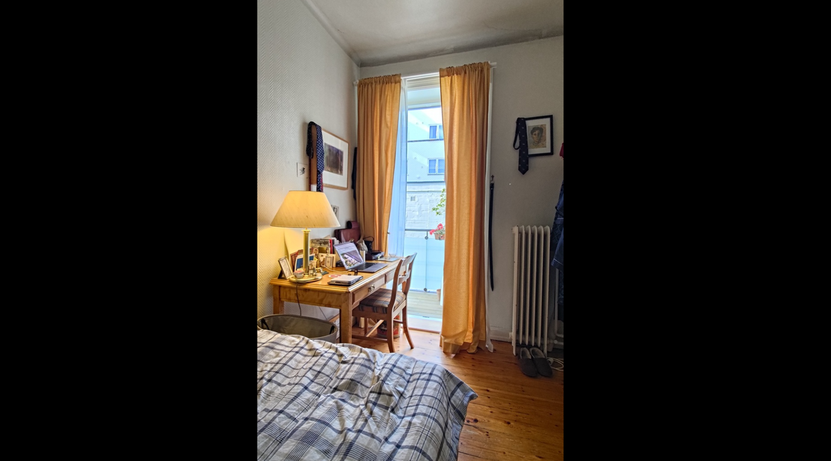 Rommet som leies ut er på ca 1,7 x 3 intime meter, men her er det plass til det du trenger. Både seng, skap og pult er det mulig å få plass til her. Prikken over i-en er en fin balkong mot den grønne bakgården.