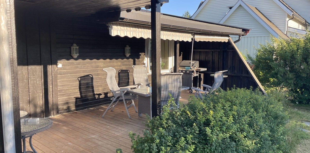 Ute er det stor terrasse med kveldsol som gir gode muligheter til grilling og hygge i sola!
