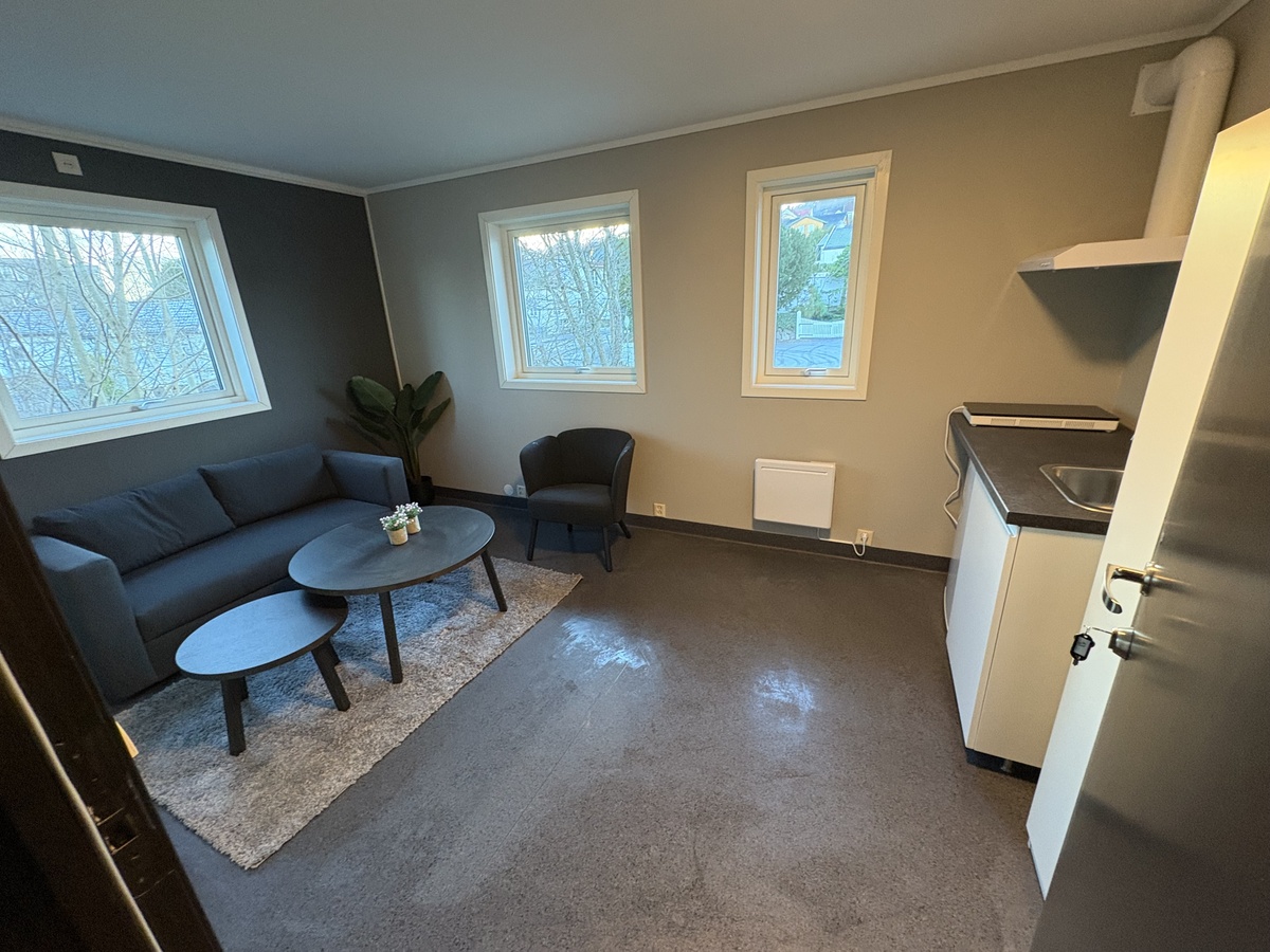 God RABATT om man er 4 stk og tar en egen fløy i bygget. Egne kjøleskap, kokeplate og vask på hvert rom. Internett og strøm inkludert.
