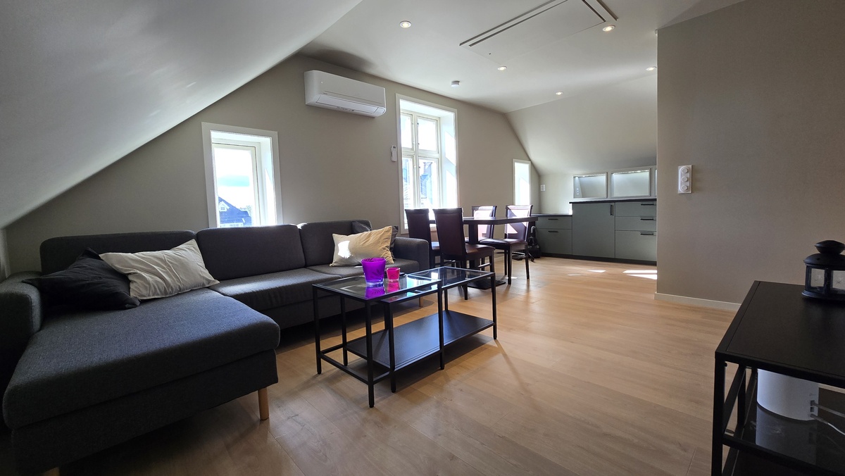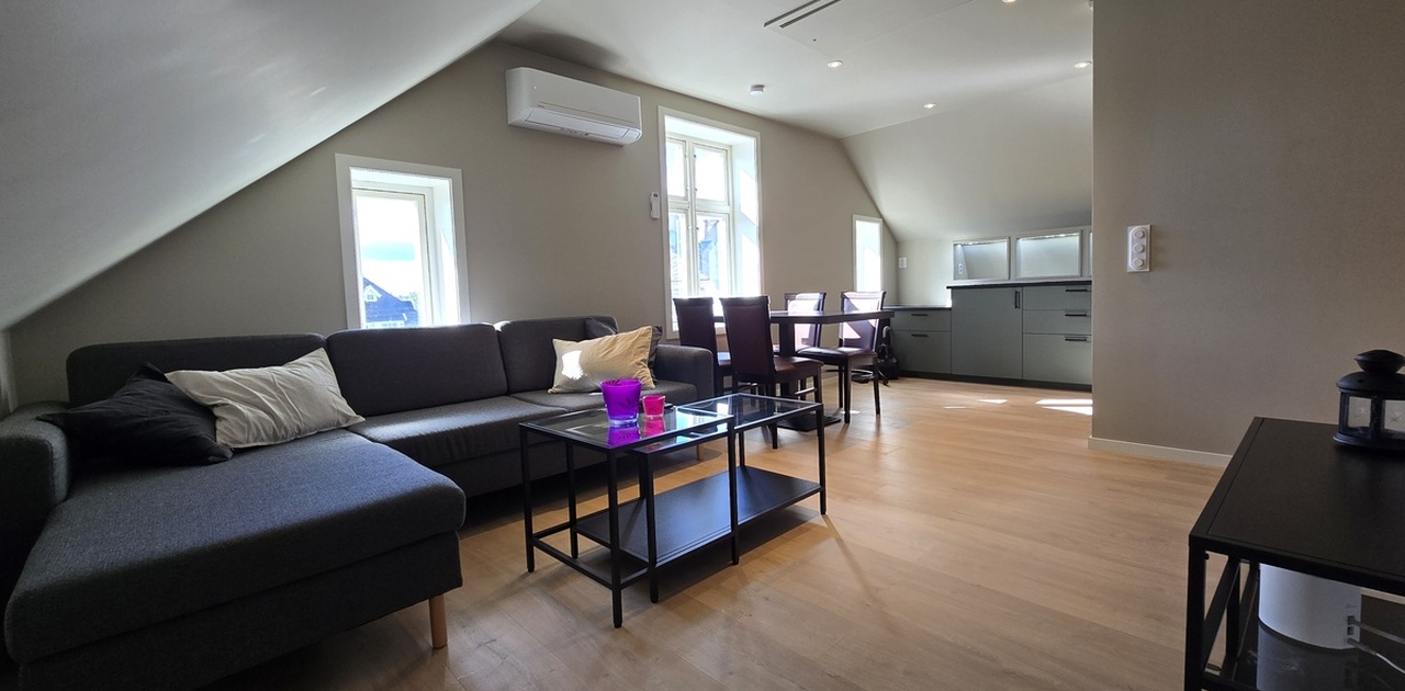 Leiligheten er godt isolert og utstyrt med varmepumpe i stue for jevn oppvarming. Moderne listefri fellesarealer med dimbar belysning og pent kjøkken.